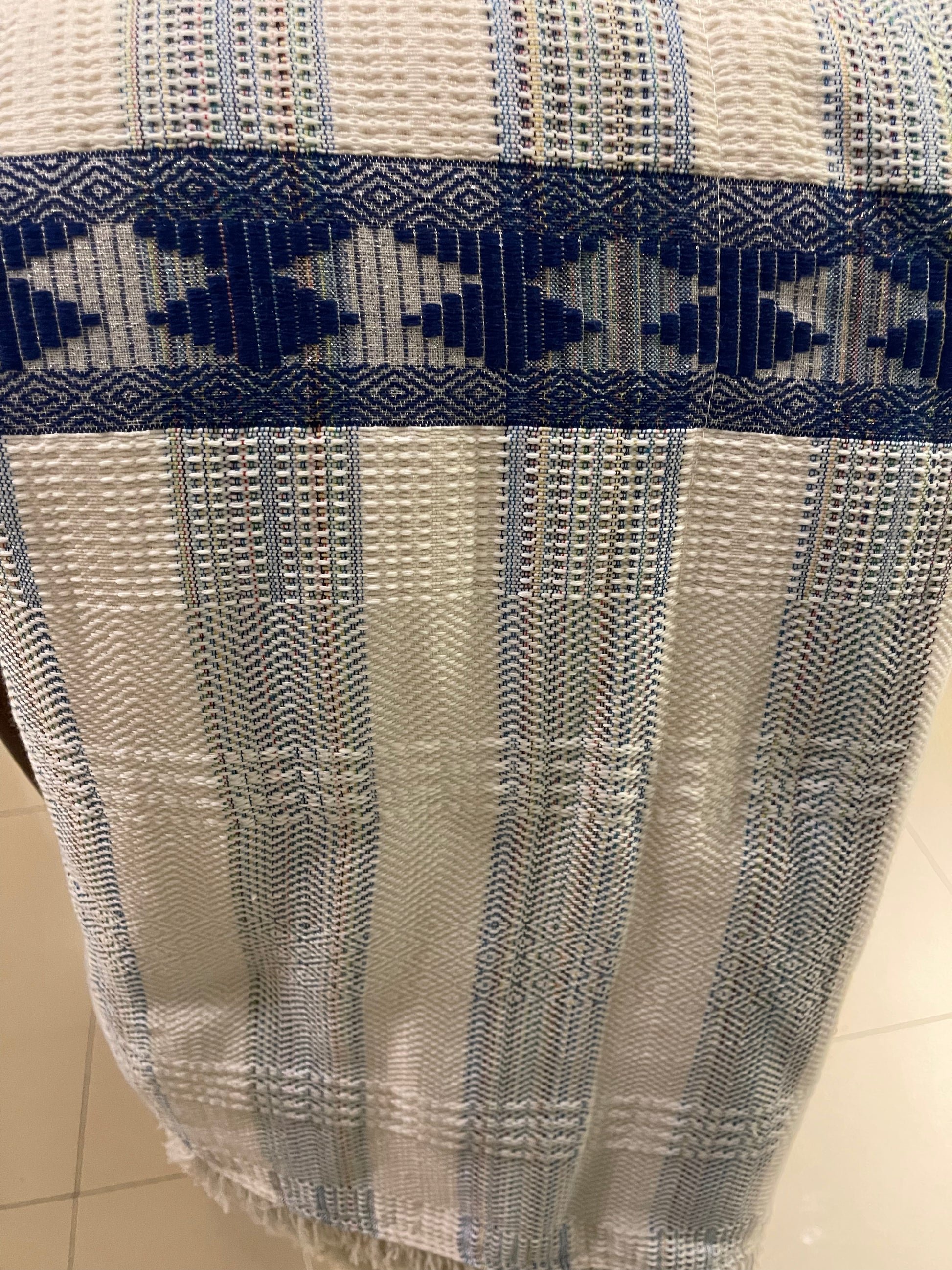 Hand made, Cozy sofa throw with Blue and white stripes and White faux fur interior. A touch of Ethiopian traditional blanket fused with Soft faux fur to create comfort and coziness.